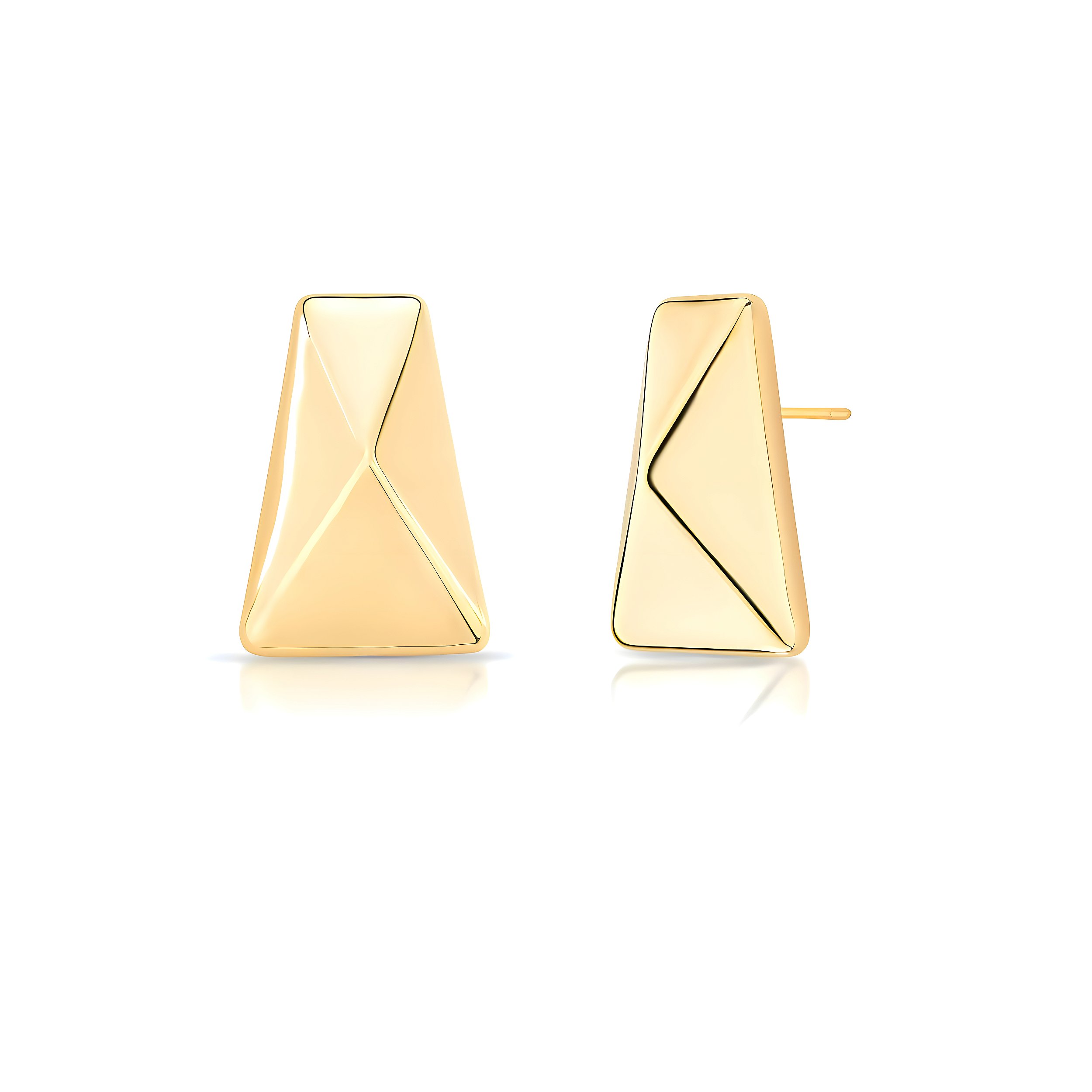 Brinco médio retangular facetado em banho de ouro 18k.