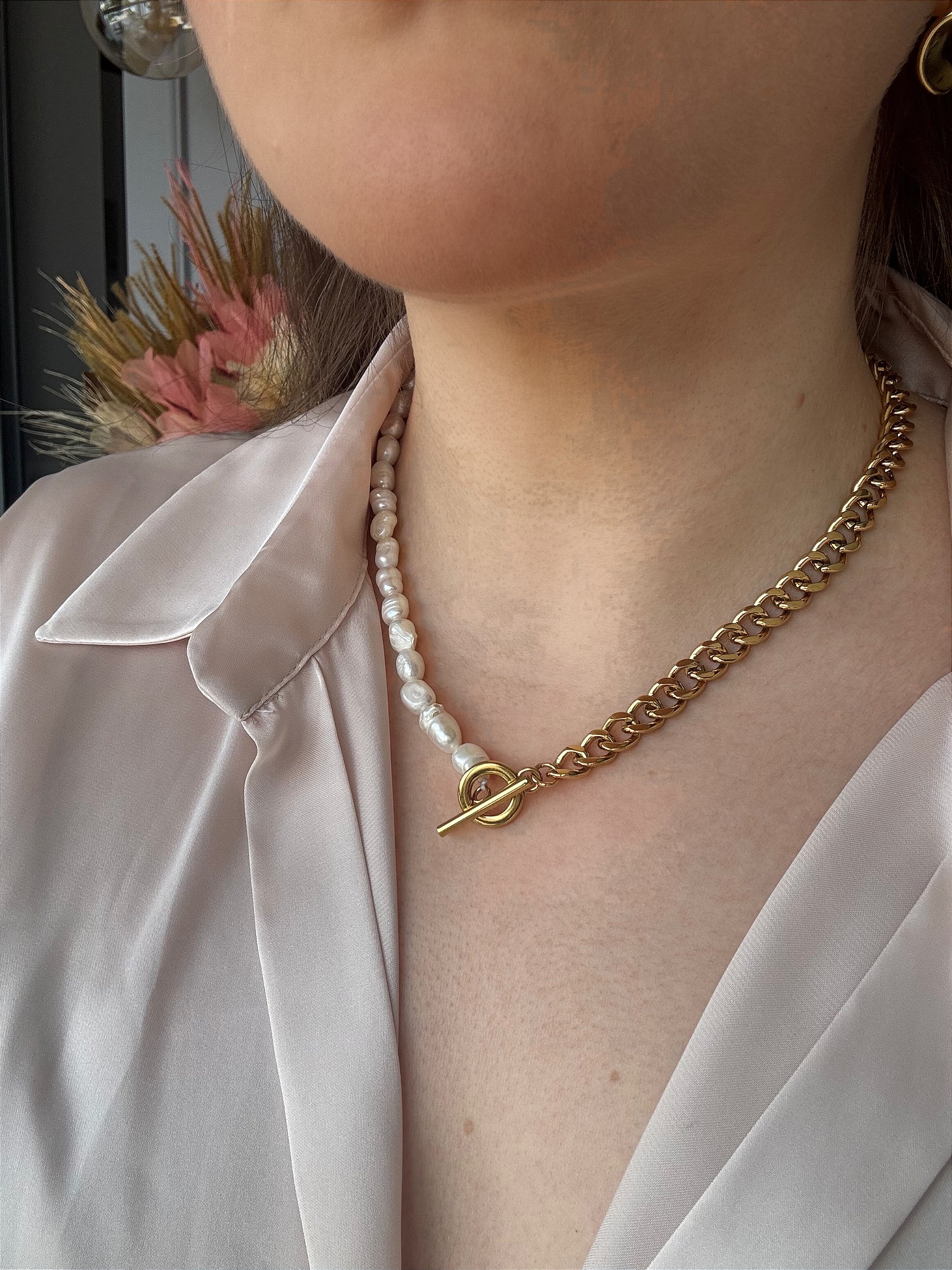 O Colar Serena é a fusão entre a suavidade orgânica das pérolas de água doce e a força da corrente dourada. Um contraste que encanta à primeira vista e revela, em silêncio, o poder da dualidade feminina: intuitiva e racional, ancestral e contemporânea, delicada e firme.